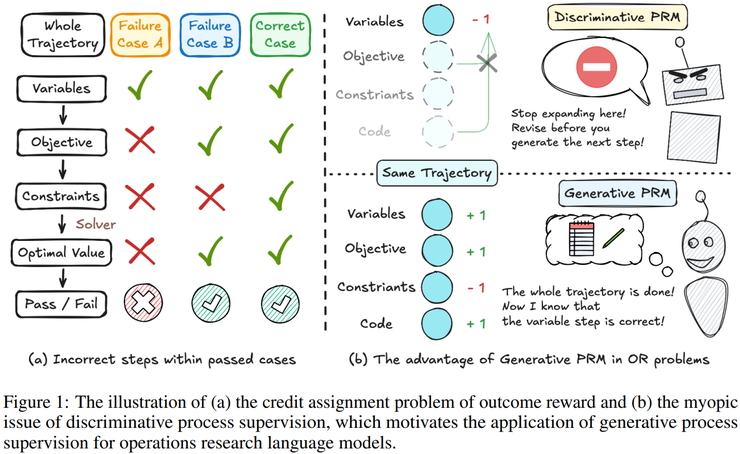传统方法往往假设最终结果正确即可反映推理质量,或认为通过对中间步骤进行逐步、局部打分便能弥补结果奖励的不足,而这项研究表明,这两种监督方式在运筹建模场景下均存在系统性偏差。