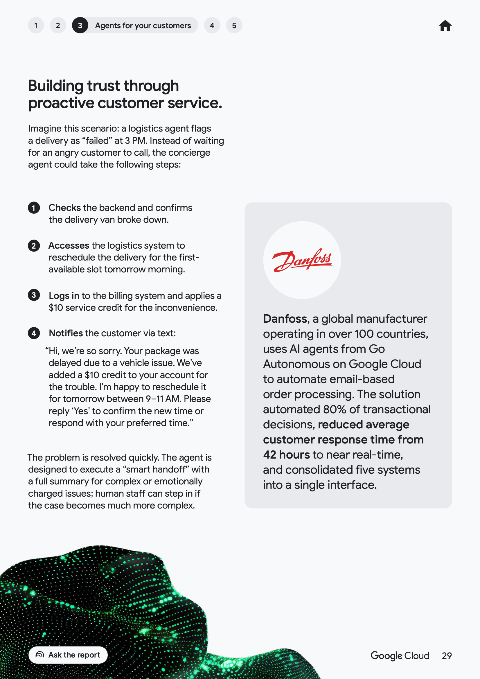 在客户体验领域,代理正推动服务模式从被动响应走向“管家式”主动服务。49%的已部署AI代理的企业将其用于客户服务与体验提升。通过接入CRM、物流与历史交互数据,代理能够识别情境并提前介入问题处理,从而缩短响应时间并提升客户满意度,部分企业已将平均响应时间从数十小时压缩至近实时。