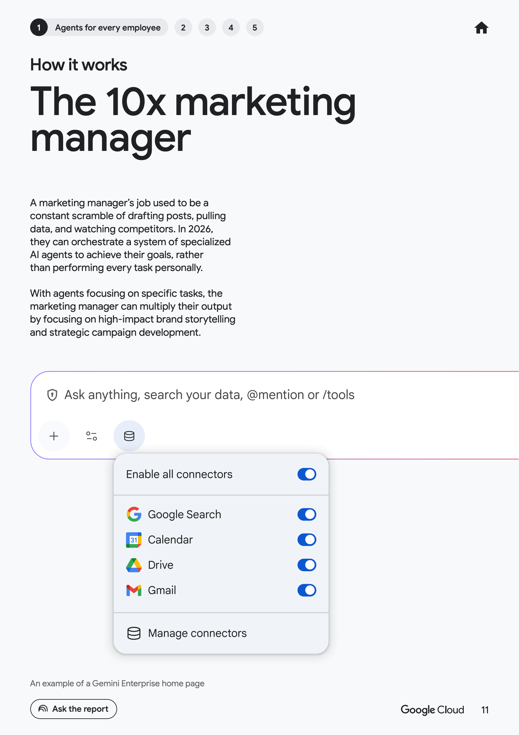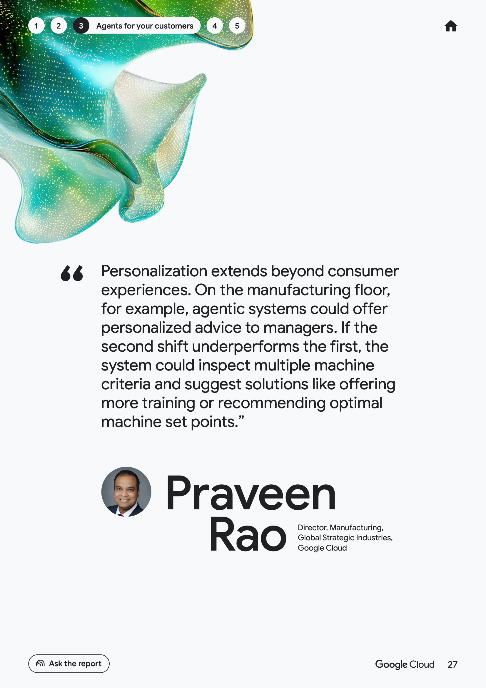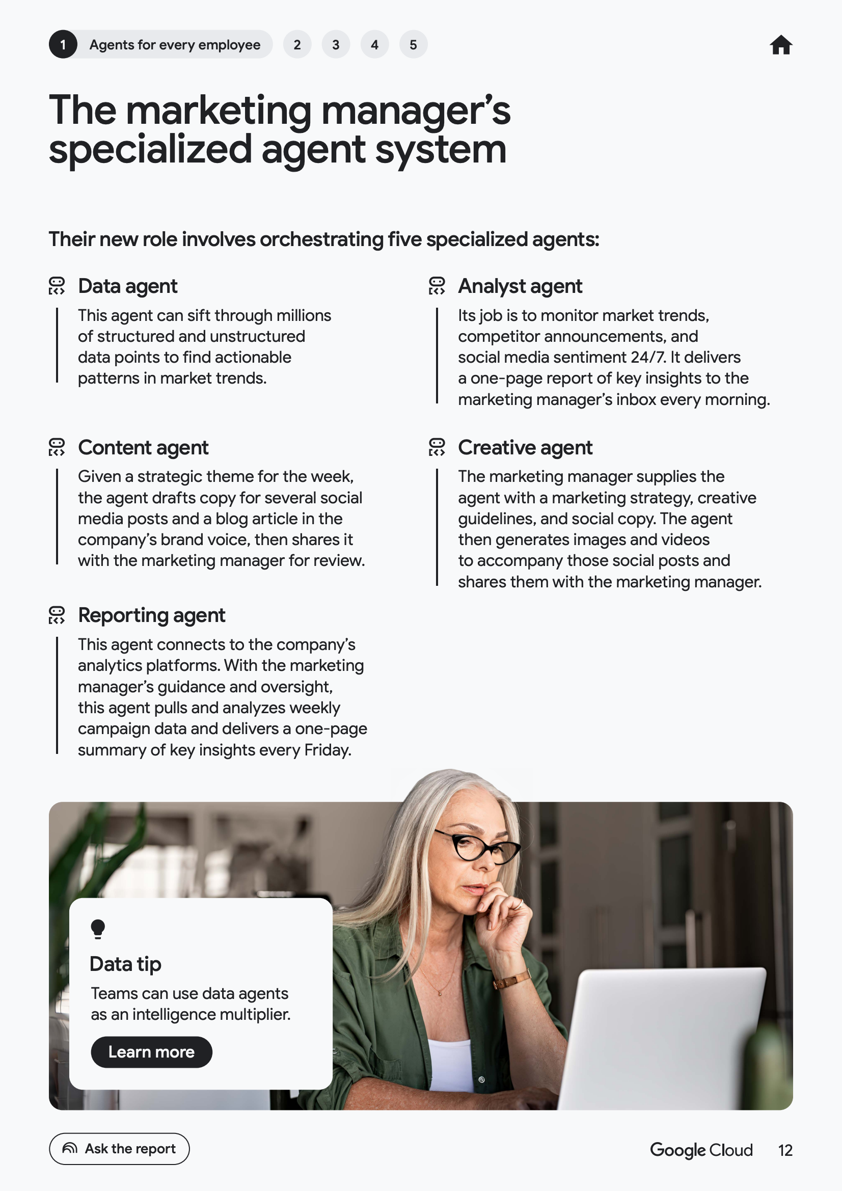 从员工维度看,AI代理正在推动以个人为中心的生产力跃迁。数据显示,52%的已使用生成式AI的企业高管表示,其组织中已有AI代理投入生产环境。其中,49%的企业将代理用于客户服务,46%用于市场或安全运营,45%用于技术支持,43%用于产品创新与研究。这意味着员工角色正从“任务执行者”转向“代理管理者”,工作方式由指令式操作转向目标导向式协同。
