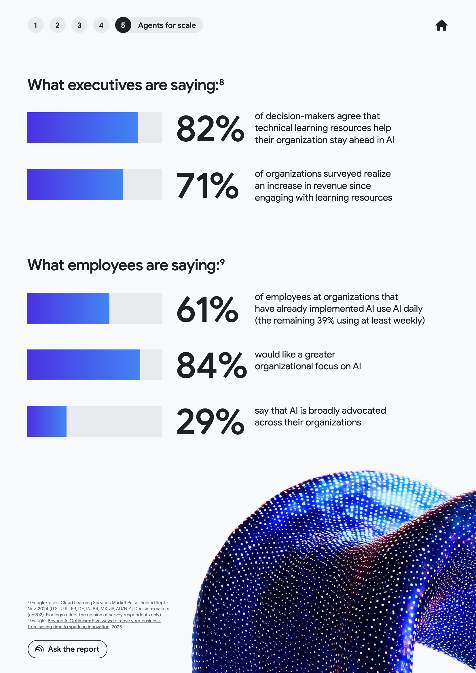 在人才与组织能力层面,技能更新成为规模化应用的决定性因素。数据显示,专业技能的半衰期已缩短至四年以内,82%的决策者认为系统化学习资源有助于保持AI竞争力,71%的企业在投入学习资源后实现收入增长。AI代理的价值释放高度依赖于员工是否具备代理编排、监督与判断能力。