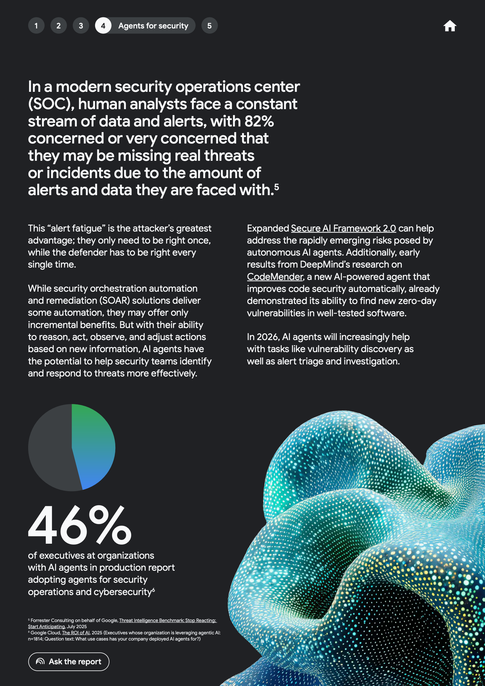 在安全运营方面,代理型AI开始缓解长期存在的告警过载问题。82%的安全分析人员担忧因告警数量过多而遗漏真实威胁,而46%的企业已在安全运营中部署AI代理。代理通过自动化分流、调查与初步响应,将一线分析任务自动化率提升至90%,并实现响应速度的数量级提升。