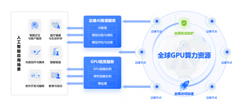 在边缘AI领域,白山云基于成熟的全球边缘节点网络与自研异构计算框架,于2025年初正式推出边缘智算云平台“白山智算”。白山智算致力于破解集中式计算在时延与成本上的瓶颈,提供从GPU IaaS到MaaS的全方位服务,并专门针对边缘AI推理进行深度优化,为用户提供高性能、低成本的AI Infra解决方案,切实破解AI应用落地的“最后一公里”难题。