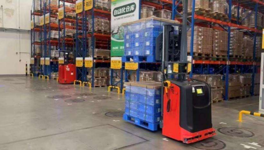 自动化仓库 AGV 货物转运作业现场