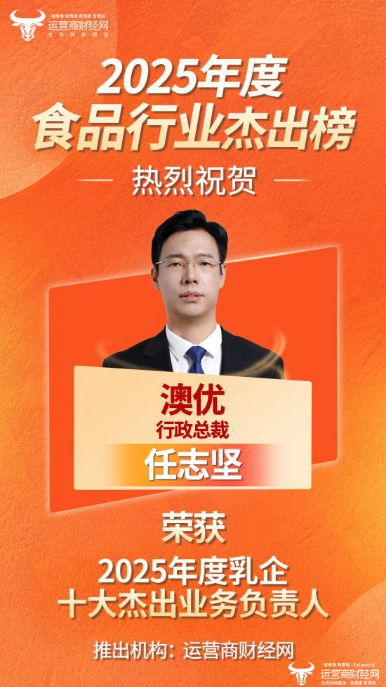 近日,由知名财经媒体运营商财经网独家打造的“2025年度乳企十大杰出业务负责人”榜单正式公布,澳优行政总裁任志坚成功入选!