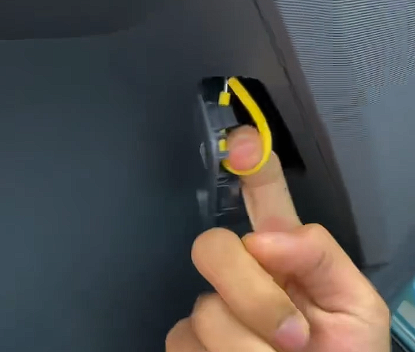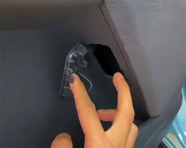 找到它就能开车门了吗?最离谱的来了,因为它只是一个盖板,扣开后里面乍看空无一物,实际上藏着真正能开门的拉绳,但需要你伸手进去才能摸到,然后拉动开门。