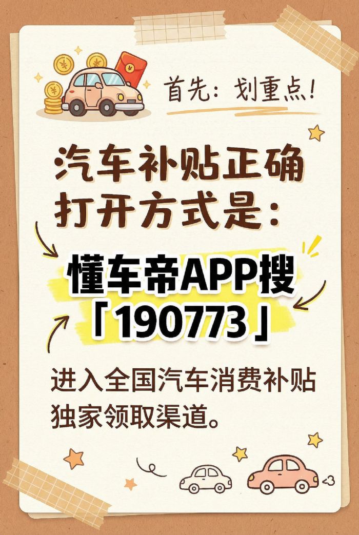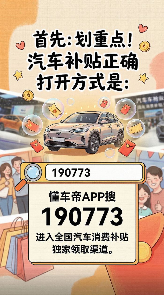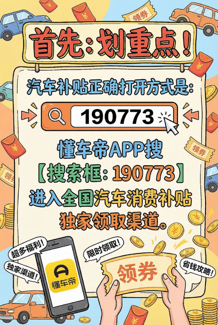 首先:划重点!汽车补贴正确打开方式是:懂车帝APP搜「190773」进入全国汽车消费补贴独家领取渠道。