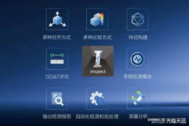 SHINING3DInspect集成了强大的三维数据获取与三维检测功能,可以实现扫描与检测任务的无缝灵活切换,支持扫描坐标对齐、数据补全、检测重计算等关键逻辑,并且具备多种对齐方式、多种比较方式、特征构建、GD&T评价、测量分析、专用检测模块、输出检测报告、自动化检测和批处理。