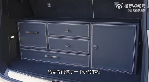 考虑到他热爱读书的习惯,吉利还在后备箱专门定制了带指纹锁的小书柜,既能存放书籍,也能妥善保管贵重物品。