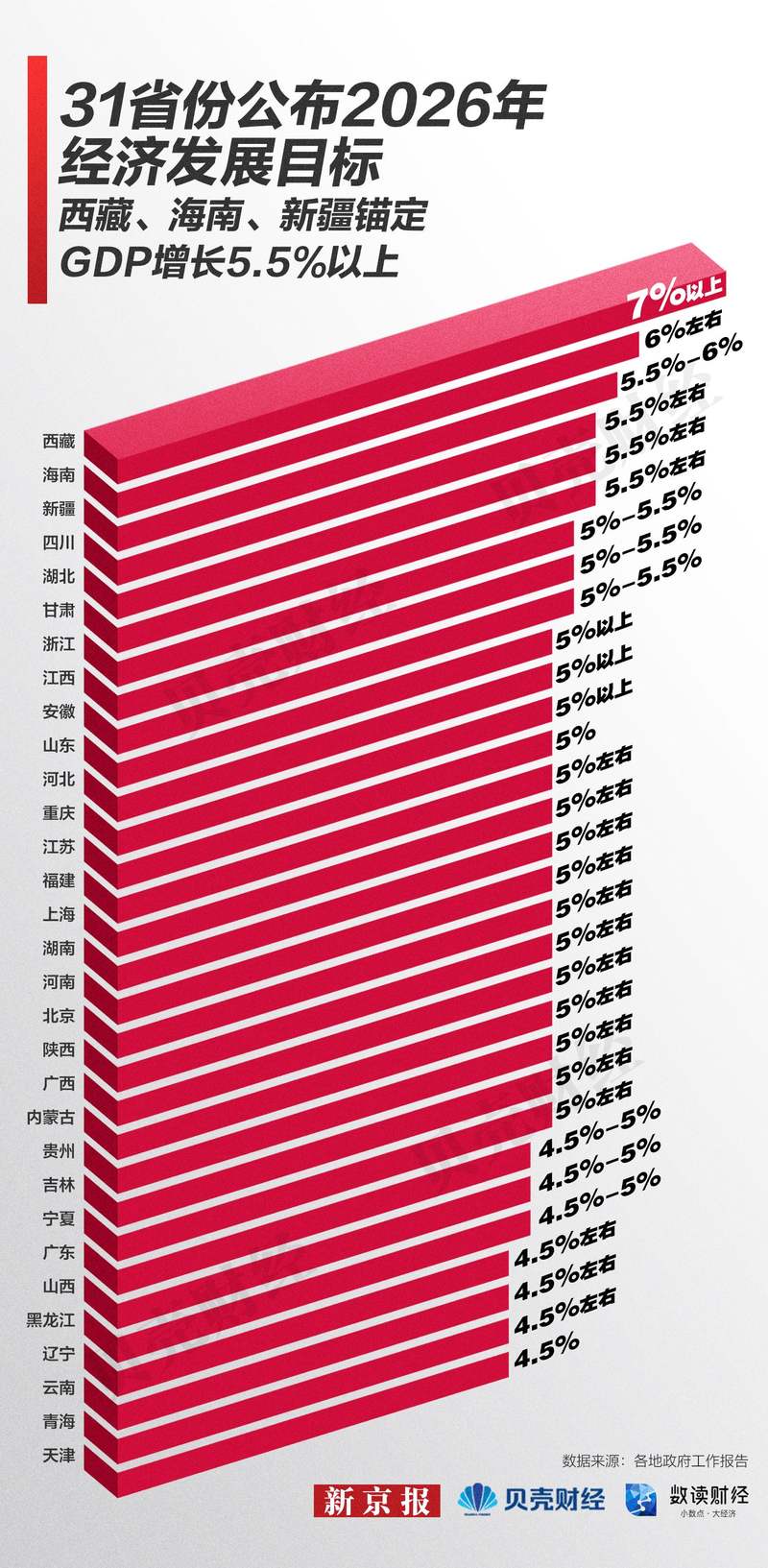 国家发展改革委宏观经济研究院投资研究所研究员吴亚平对新京报贝壳财经记者表示,2026年是“十五五”开局之年,开好局对推动实现“十五五”规划目标任务至关重要。多地提出“在实际工作中全力争取更好结果”,是实事求是的安排。
