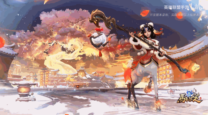 湖面冰封,朱墙映寒,几声烟花轰鸣而起,寒冬的氛围立刻被春节的暖意驱散。随着几声蹄声响起,莉莉娅正拨开梅枝款款走来,遥遥望着檐角上下的孔明灯和红灯笼。这并不是什么古装片的情节,而是《英雄联盟手游》(以下简称LOLM)与端游团队联手打造的新年创意主题 手游“蕊雪盈春”系列皮肤。