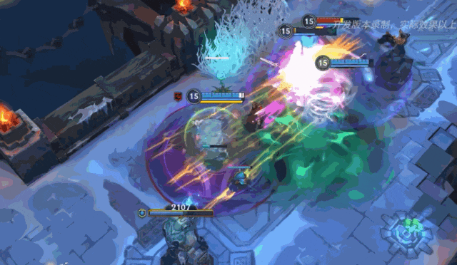 其中最富特色的就是她的大招了。简单来说,她的大招就是远程丢下一个大范围内的圈,然后把敌方英雄当做水果来切,完全基于手游“划动”的操作来设计。