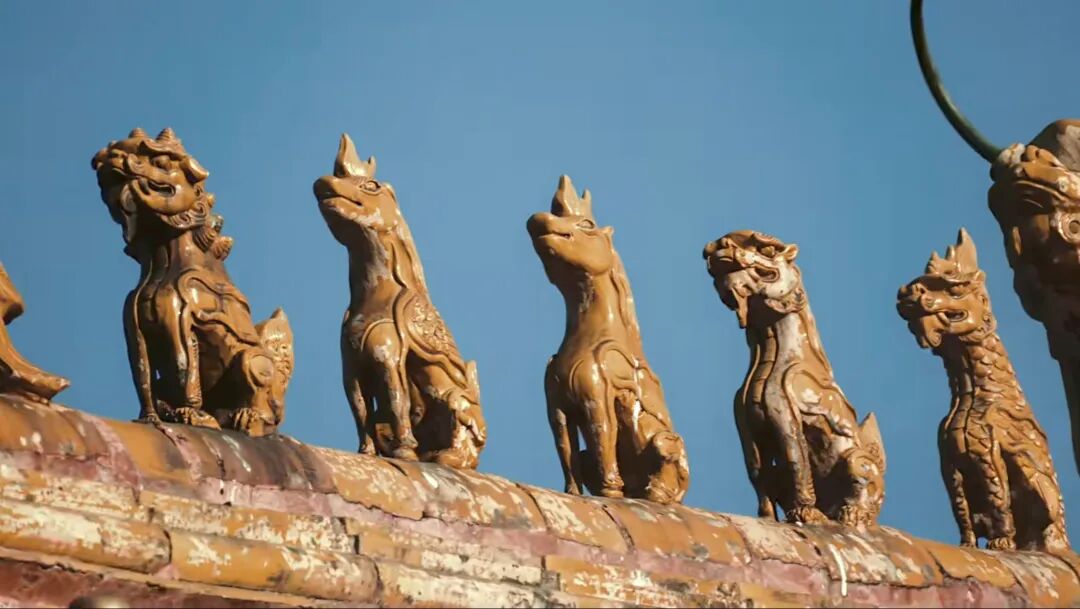 包裹在这份礼盒最外层的中国元素,灵感来源于故宫瑞兽主题文化。根据手游设计师的介绍,他们选择的这些瑞兽天马、海马、押鱼、獬豸、斗牛来自故宫的屋脊兽。这种瑞兽在我国的传统建筑形制中,常被放在古代官家的屋顶,被赋予了镇宅辟邪和招财纳祥的美好意向。