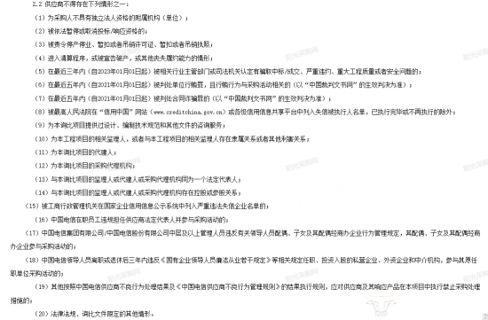 具体来看,项目规定的“不得存在情形”有20条,其中,第二条为“被依法暂停或取消投标/响应资格的”。
