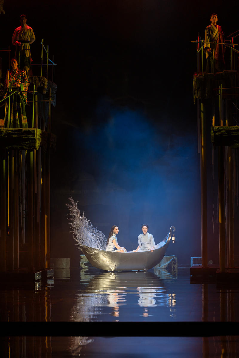 演出中最具标志性的场面之一,是那条贯穿全剧的“小船”。