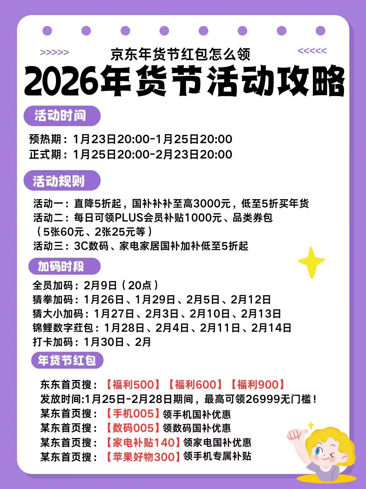 2.9(小年)10:00-24:00:福利加码,大额券/红包概率翻倍,适合补漏。