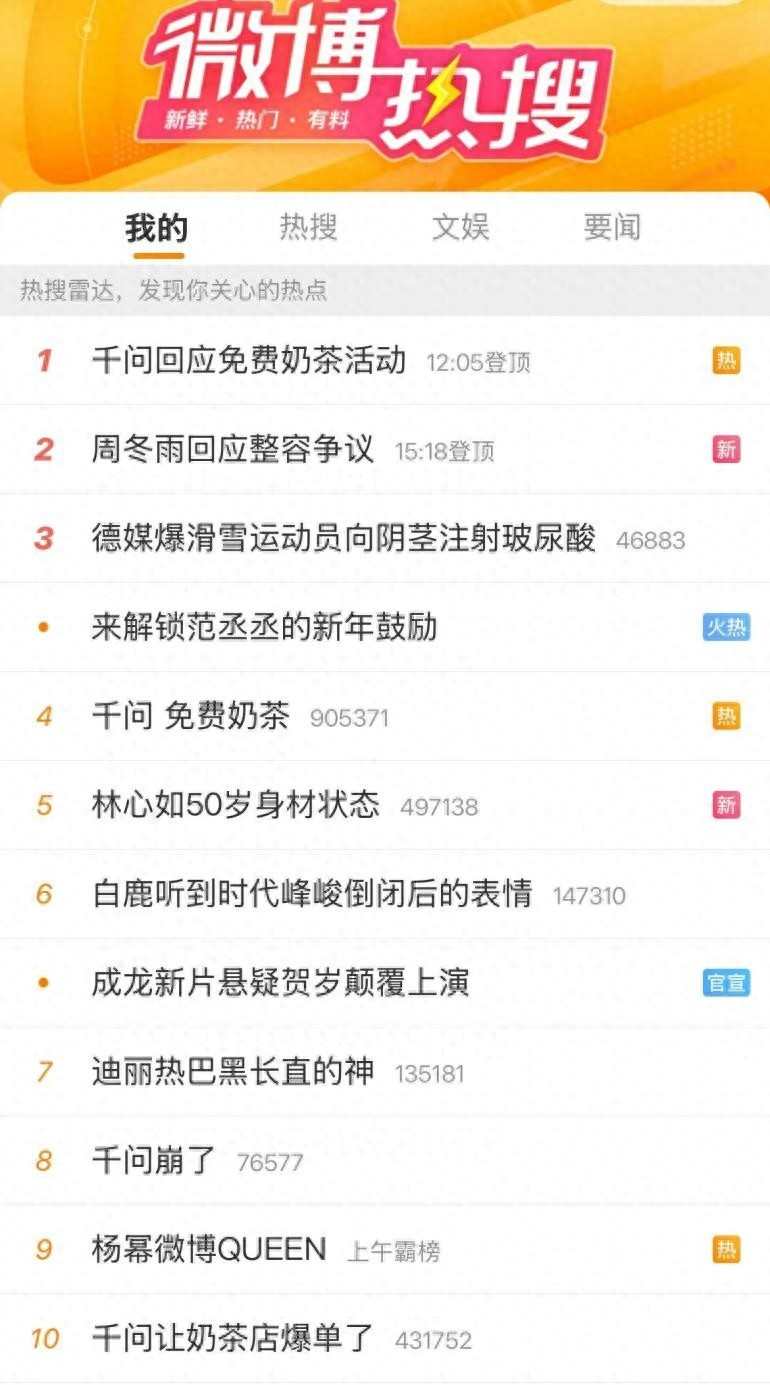 活动上线不到4小时,用千问APP下单超200万单奶茶。多个相关话题迅速登上热搜榜前十。