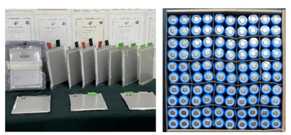 20Ah固态钠离子软包电池(左);18650固态钠离子圆柱电池(右)