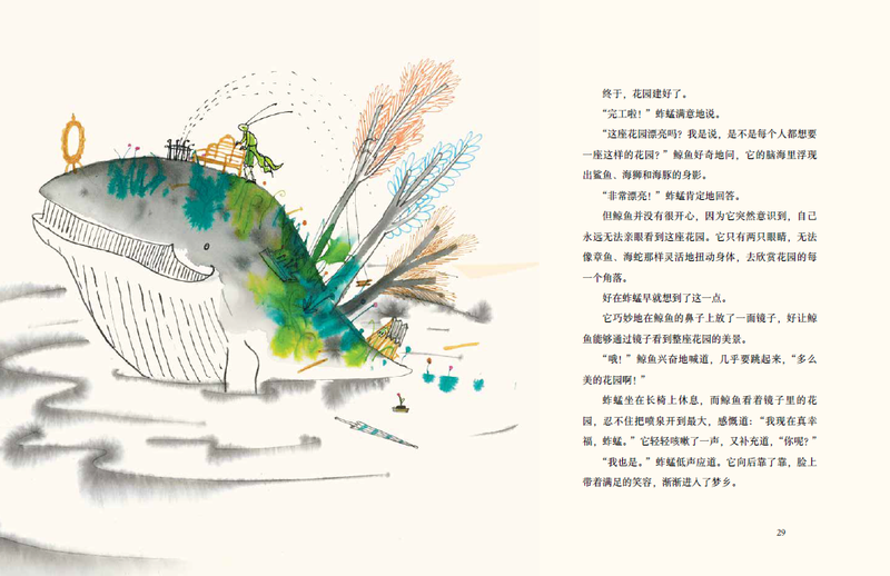 有一天,蚱蜢收到一封信,信里鲸鱼请他帮忙打造一座花园。蚱蜢收集了所有需要的材料,把东西装上小船,便出发了。经过蚱蜢的精心设计,一座精美绝伦的花园建成了。众多动物前来拜访,鲸鱼会如愿过上和朋友们一起快乐聚会的生活吗?荷兰童书作家敦·德勒根将自己的哲思融入童话故事中,借鲸鱼建造完美花园招待朋友聚会的故事,探讨了“孤独与陪伴”“得到与失去”“追求完美与接纳自我”等话题,既是一部写给儿童的童话,也是一则写给成人的寓言。