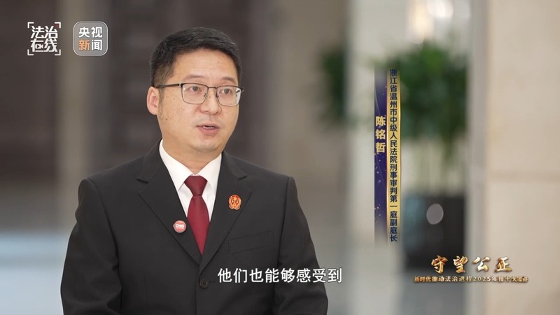 浙江省温州市中级人民法院刑事审判一庭庭长 方勇:不管是发生在境内还是境外,也不管是中国人还是外国人,只要对中国公民实施犯罪,用中国的法律、用最公平正义的程序,恪守最严格的证据标准,让犯罪得到应有的惩罚,我感觉是我的使命。
