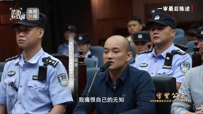 缅北白家犯罪集团首要分子 白应苍:到现在我家也没了,故土也没了,我什么都没了,所以我现在痛恨诈骗不亚于任何一个人,我痛恨自己的无知,自己的愚蠢,我痛恨自己无节制的贪欲和短浅的目光,在被引渡到中国接近两年的时间里,我终于不必再担惊受怕,也终于不必再苦苦支撑自己厌恶却无法改变的生活状态。另外,我想代表我全家向中国人民跟中国政府道个歉,因为我们全家的行为给数万的中国人民造成了伤害,真的对不起。