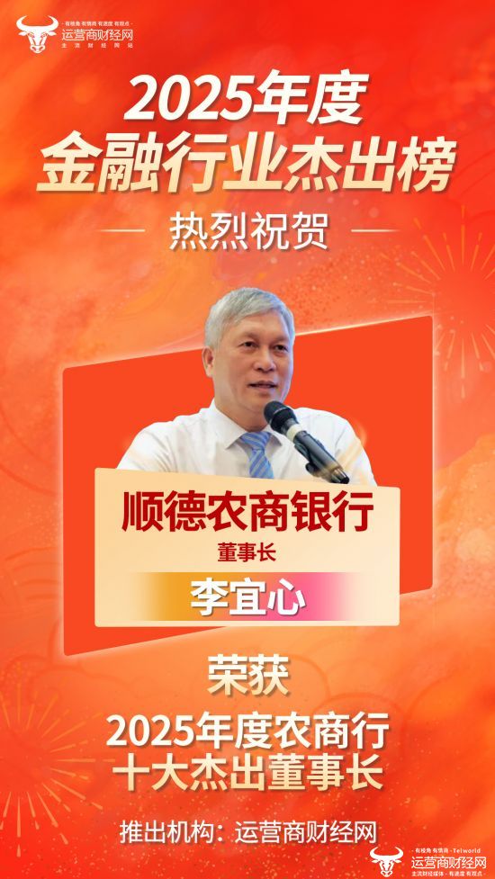 日前,运营商财经网基于对金融行业的观察,推出了“2025年度农商行十大杰出董事长”榜单,旨在对过去一年表现优秀的企业和个人予以表彰。经过综合考量,顺德农商银行董事长李宜心榜上有名。