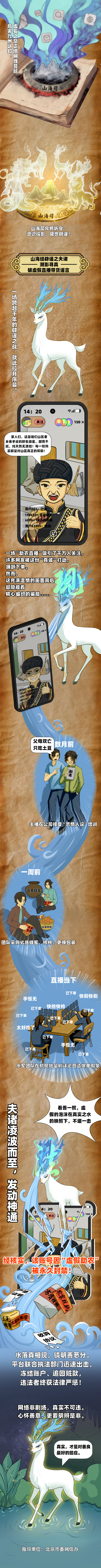 开明兽九首慧眼,拆穿AI换脸迷局;毕方鸟青焰澄浊,破除灾害事故谣言;白泽真言洞明,识破民生诈骗圈套;夫诸溯影寻真,撕开虚假带货伪装;狻猊静心破妄,洞见假药营销真相;烛龙睁眼为昼,照彻恶意诋毁阴霾。本期特邀夫诸坐镇辟谣前线,以溯影寻真之能撕开虚假直播带货的流量伪装,戳穿“数据造假”类虚假营销骗局。