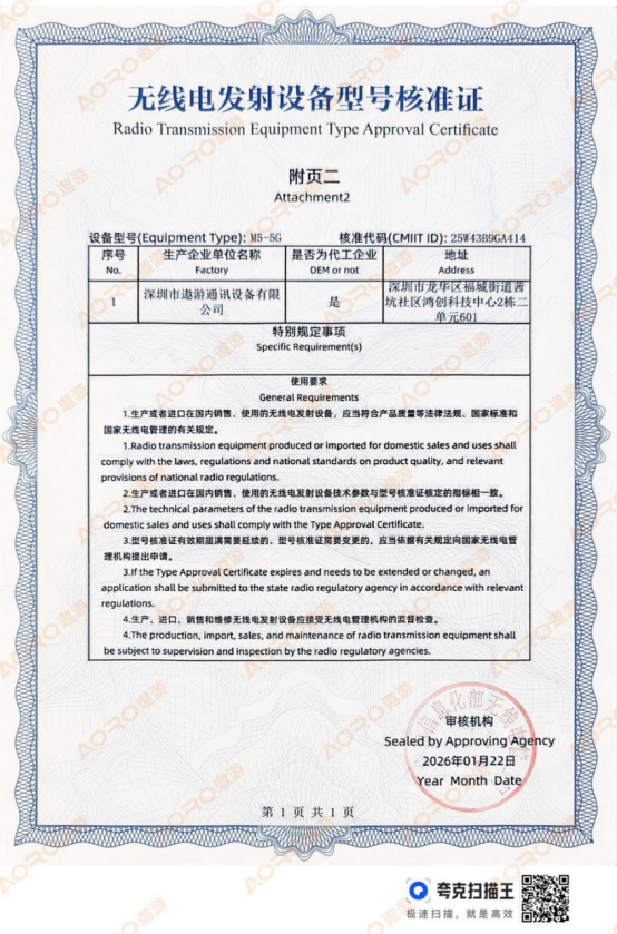 取得型号核准证,是遨游通讯履行法定义务的体现,但更深层次的意义,在于其承载的企业责任与对用户的承诺。这要求企业不仅在产品研发阶段就恪守技术标准,更需要在生产、质检乃至售后服务的全链条中,确保每一台出厂设备的技术参数都与核准指标绝对一致。遨游通讯通过此证向市场郑重宣告,其遨游M5 5G北三短报文智能终端是一款在无线电管理层面经得起检验的产品。这种对合规性的执着追求,超越了单纯的市场准入需求,升华成为对用户通信安全、作业效率乃至合法权益的切实保障,体现了遨游通讯践行“让世界更安全、更高效、更智能”使命的社会责任感与行业担当。