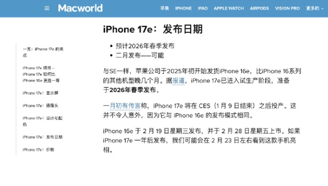 此外,iPhone 17e还将换装苹果最新研发的自研蜂窝网络芯片与无线通信芯片,有望进一步优化设备的通信稳定性与传输效率。