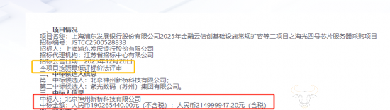 近日,浦发银行一项海光服务器采购项目公示中标结果,这项成交金额接近1.9亿元的项目,最终被谁拿下?