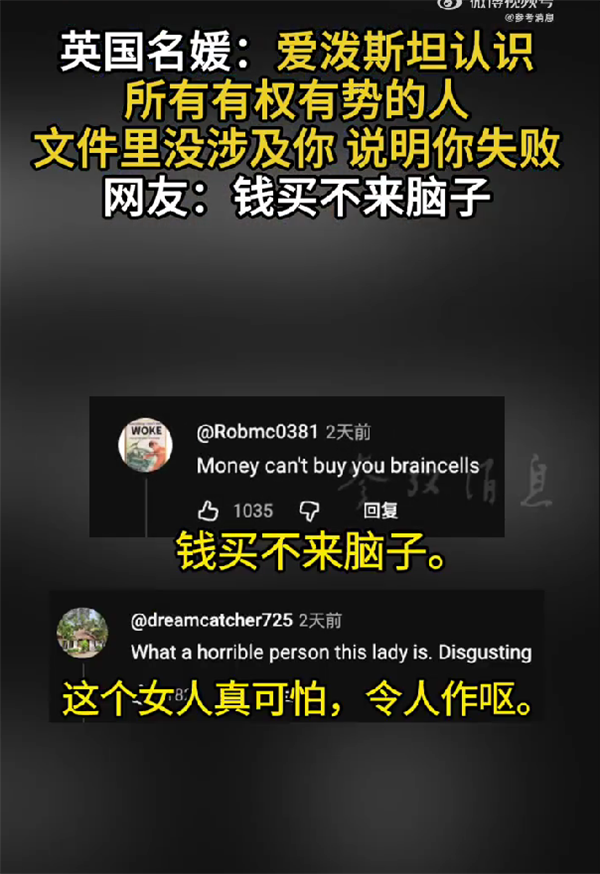 网友纷纷留言表示:钱买不来脑子;这个女人真可怕,令人作呕;简直卑鄙至极。