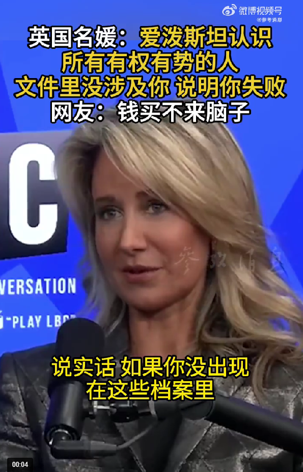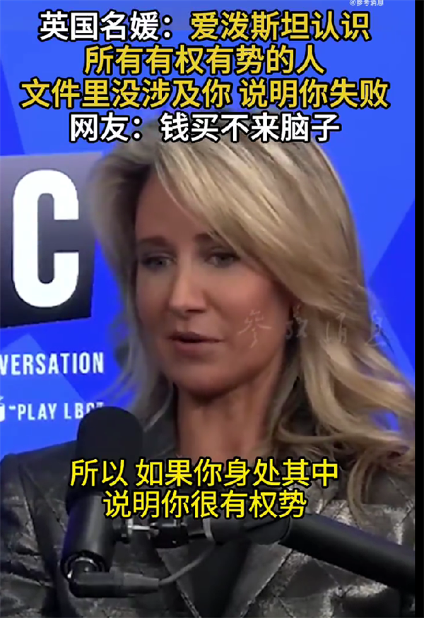 她说:“他(爱泼斯坦)认识所有有权有势的人。所以,如果你身处其中,而且你很有权势,说实话,如果你的名字没有出现在这些档案里,那是一种侮辱。那就意味着你是个失败者。”