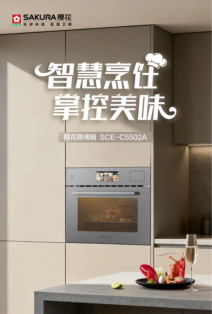 樱花蒸烤箱C5502A以智慧科技重新定义家庭烹饪,不仅降低了烹饪门槛,更极大地拓展家庭美食的边界,让每个人都能轻松成为驾驭多种风味的美食家。
