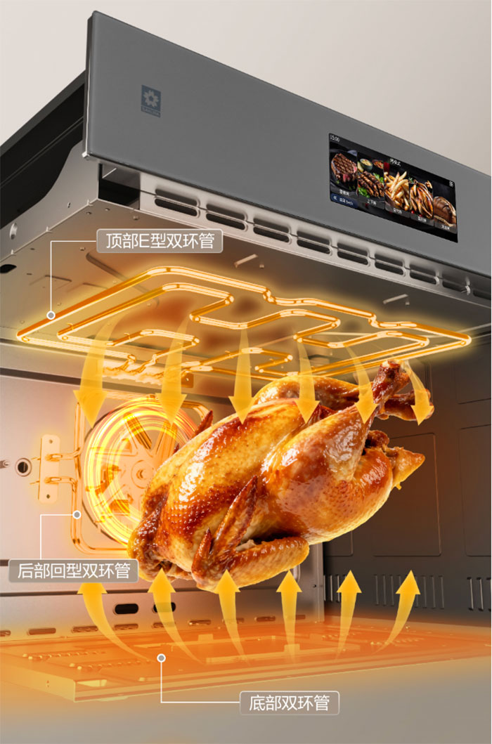 实时控温,成就专业级烘焙体验,樱花蒸烤箱C5502A采用多维度立体加热管布局,配合PID算法精准温控,可实现全腔体的均匀受热,让热量温柔包裹每一份食材。无论是需要金黄酥脆的烤鸡表皮,还是追求柔软湿润的蛋糕内芯,都能通过多段多层精细烹饪来实现,让家庭烘焙也能达到色香味兼具的水准。