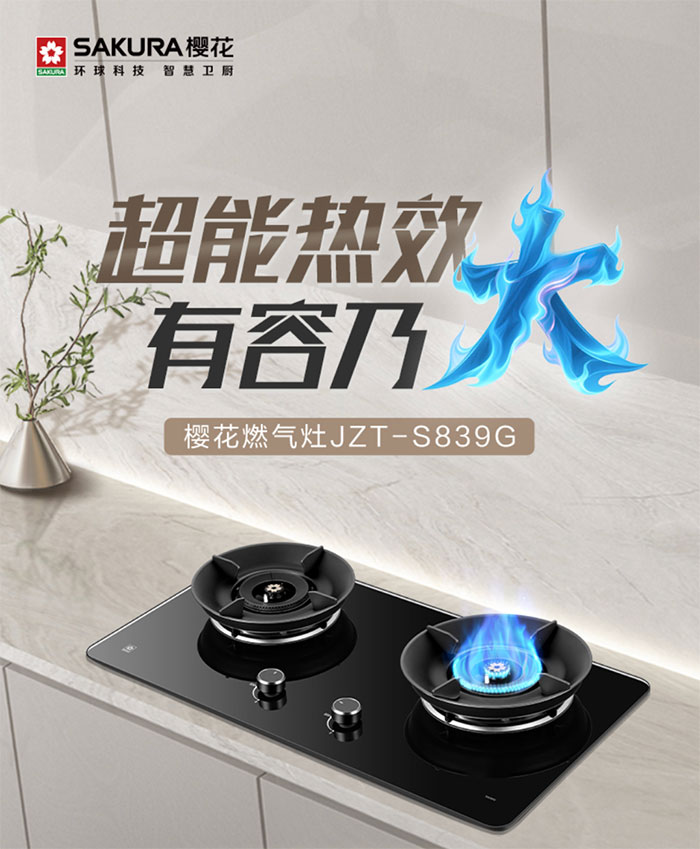 樱花燃气灶S839G以精准火力激发曼妙鲜香,以周全严密的设计托底日常,让厨艺尽情挥洒,畅快感受美味时刻的热烈与温情。