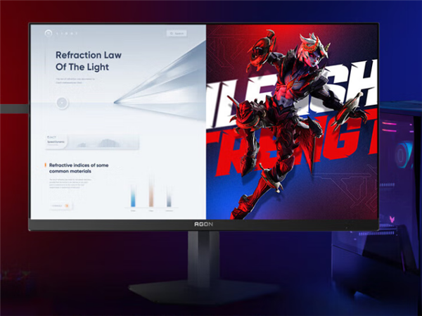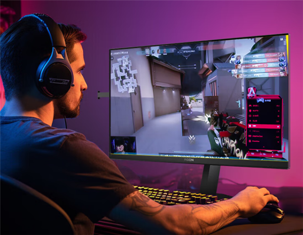 设计方面,显示器边框相对传统,背面搭载Light FX音乐律动炫彩氛围灯,提供14种灯光效果与超10万种颜色自定义。