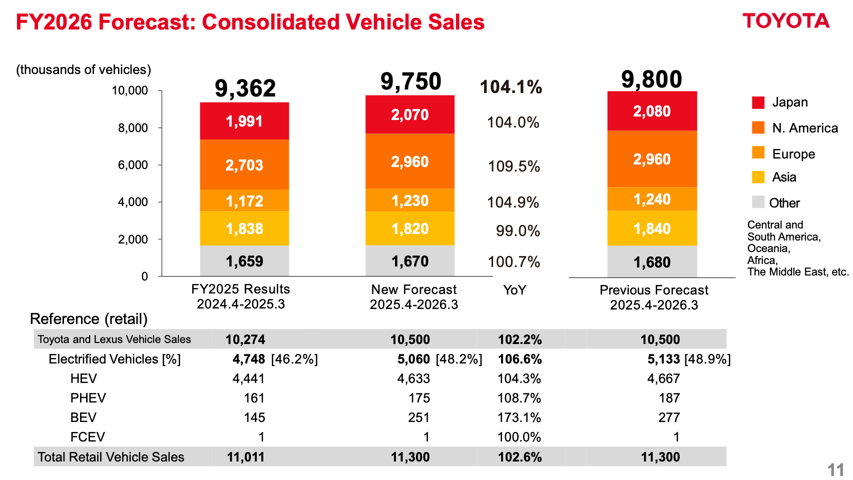 即便身处行业转型的复杂环境,丰田管理层仍展现出对盈利修复的信心,还上调了2026财年的全年财务预期:将全年营业利润预期从3.4万亿日元调高至3.8万亿日元;全年销售净额预期从49万亿日元调至50万亿日元;全年净利润预期更是从2.93万亿日元上调至3.57万亿日元。