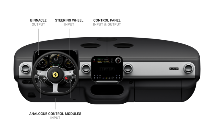 在这个金属骨架之上,法拉利植入了被称为「模拟控制模块」(Analogue Control Modules)的交互单元。