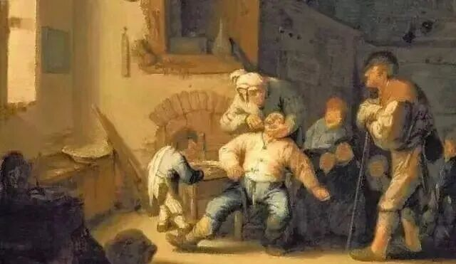 梵奥斯塔德17世纪作品《乡村理发师》局部。