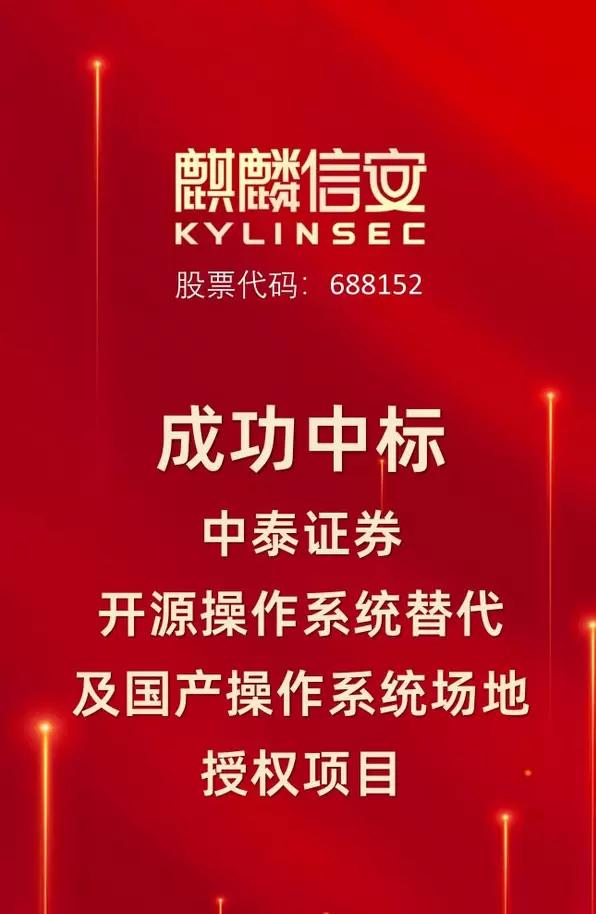 麒麟信安在金融证券领域再下一城,成功中标中泰证券开源操作系统替代及国产操作系统场地授权项目!该项目涵盖为期三年的操作系统场地授权服务,以及CentOS系统迁移实施,将助力中泰证券加快推进国产化转型进程,夯实数字化发展技术底座,为其构建安全可控、高效稳定的数字基础设施提供关键支撑。
