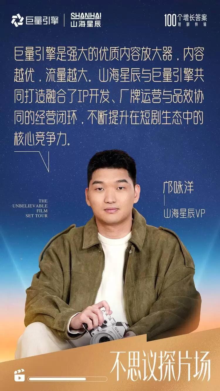 山海星辰与巨量引擎的合作,超越了单纯的流量采买,致力于共建增长的 “第二引擎”,将不同的 IP打造为一场文化事件,通过平台策划的话题、达人共创等内容,持续探索IP授权、品牌定制剧等深度模式,验证短剧作为新营销载体的商业潜力,打开更广阔的价值增长空间。