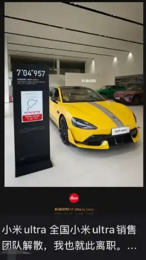 冷不丁的,小米解散了高性能车型 SU7 Ultra 的专属销售团队 Ultra Master。