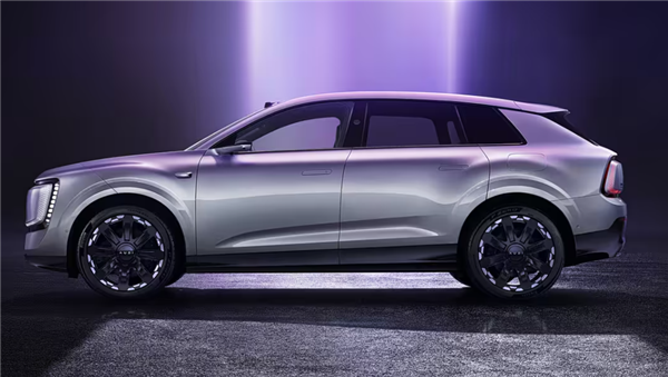车身侧面采用溜背式线条,搭配隐藏式门把手与大尺寸多辐式轮毂,风阻系数进一步优化。
