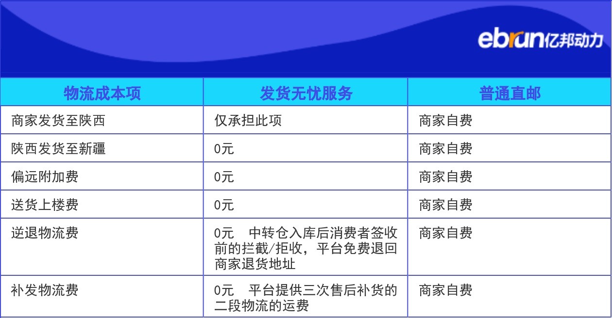 | 物流成本项 | 发货无忧服务 | 普通直邮 |