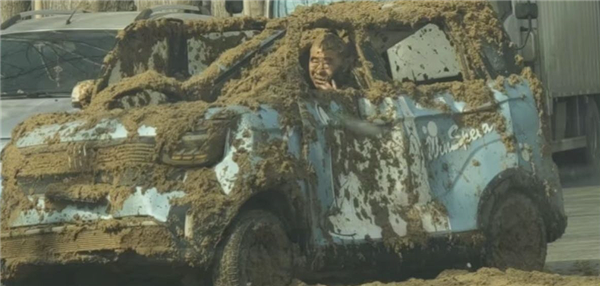 后方一辆满载粪水的罐车为避免直接碰撞,紧急刹车,巨大惯性使罐车内粪水瞬间从顶部喷涌而出,直接泼洒在“老头乐”上,导致车身被砸变形,老人全身被粪水浇透。