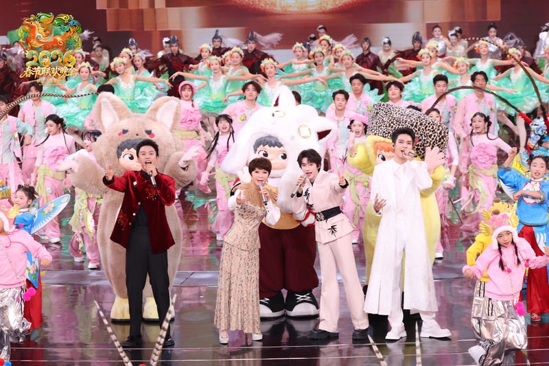 同时,晚会深耕青春表达与经典焕新,以炫酷舞美点燃唱跳激情。檀健次新歌《心意的佐证》舞台首唱,以还原居家场景的舞台,展现大城市青年独居生活的内心充盈与自在。单依纯以《我表示理解》致敬华语经典的同时诠释当代青年洒脱、忠于自我的生活态度。时代少年团以《登顶》展现无畏攀登的青春风暴,诠释“山高人为峰”的励志奋斗精神。凤凰传奇《拜新年》打造突破次元壁的“春节庙会”,以创新手势舞,传递出浓浓的年味与祝福。大张伟、谢娜在《阳光彩虹小白马》打造的像素风“人生闯关游戏”舞台,为年轻人传递战胜烦恼的乐观与勇敢。