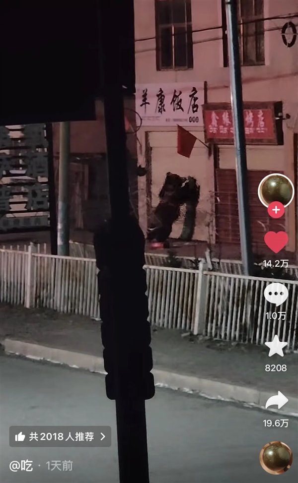 相关视频画面显示,一家名叫羊康饭店的餐馆,有藏马熊疯狂捶门。另一个视频显示,藏马熊抬起了卷帘门,随后两只熊钻进了餐馆。