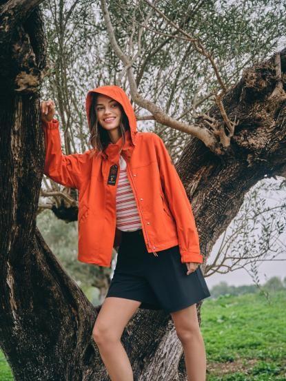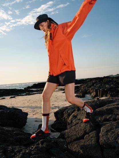 经典金麦色基础上,女款新增砂岩红配色,采用短款利落的箱型廓形,兼顾活动灵活性与时尚减龄效果,适配从户外登山到日常穿搭的多元混搭需求。衣身造型分割线与反插口袋设计,融细腻质感与时尚美学于一体;可拆卸连帽搭配下摆可调节系统,优化女性身型适配度;简约袖章与内里满版品牌印花点缀,提升穿搭辨识度与时尚感。