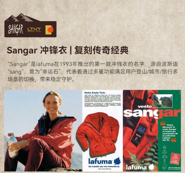 “Sangar”源自波斯语 “sang”(意为“幸运石”),承载着幸运守护的美好寓意,该名称最初为Lafuma1993年推出的首款冲锋衣专属命名。2025年品牌95周年之际,Sangar系列以复刻形式重磅回归,唤醒大众关于户外探索的经典记忆与情怀。
