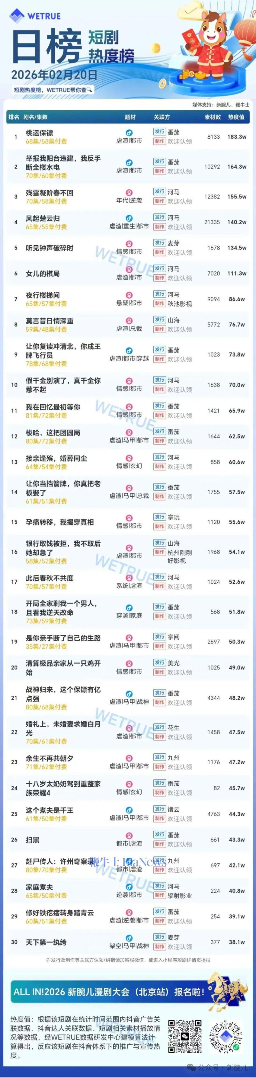 今天发布的是昨天(2月19日)漫剧及短剧付费大盘日榜。