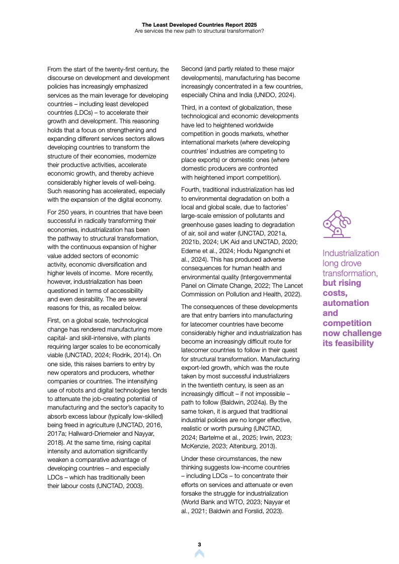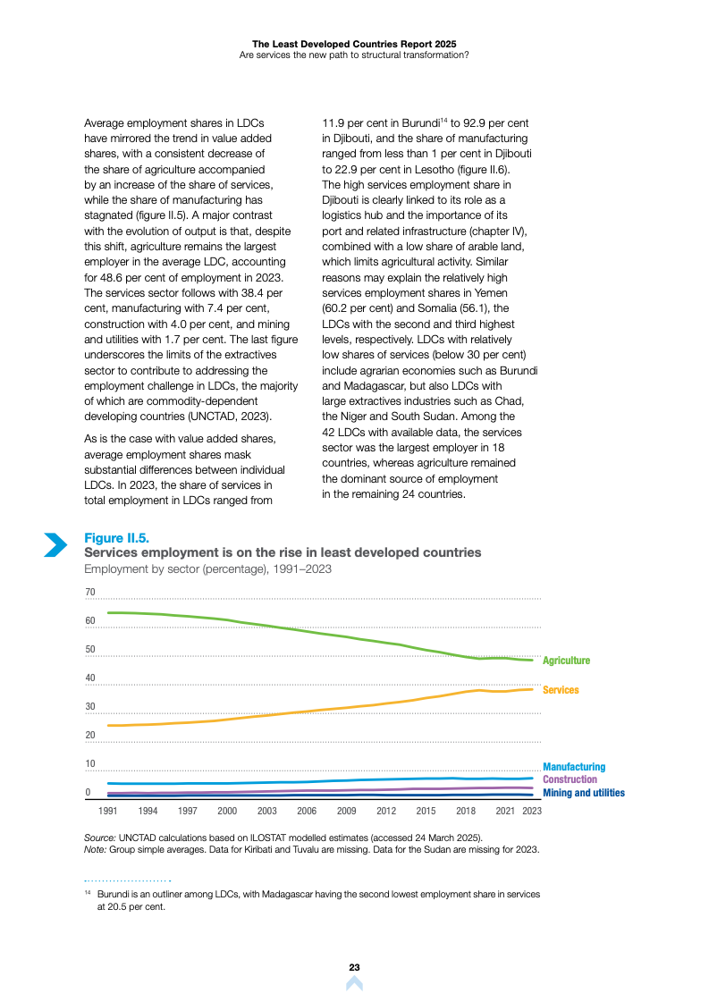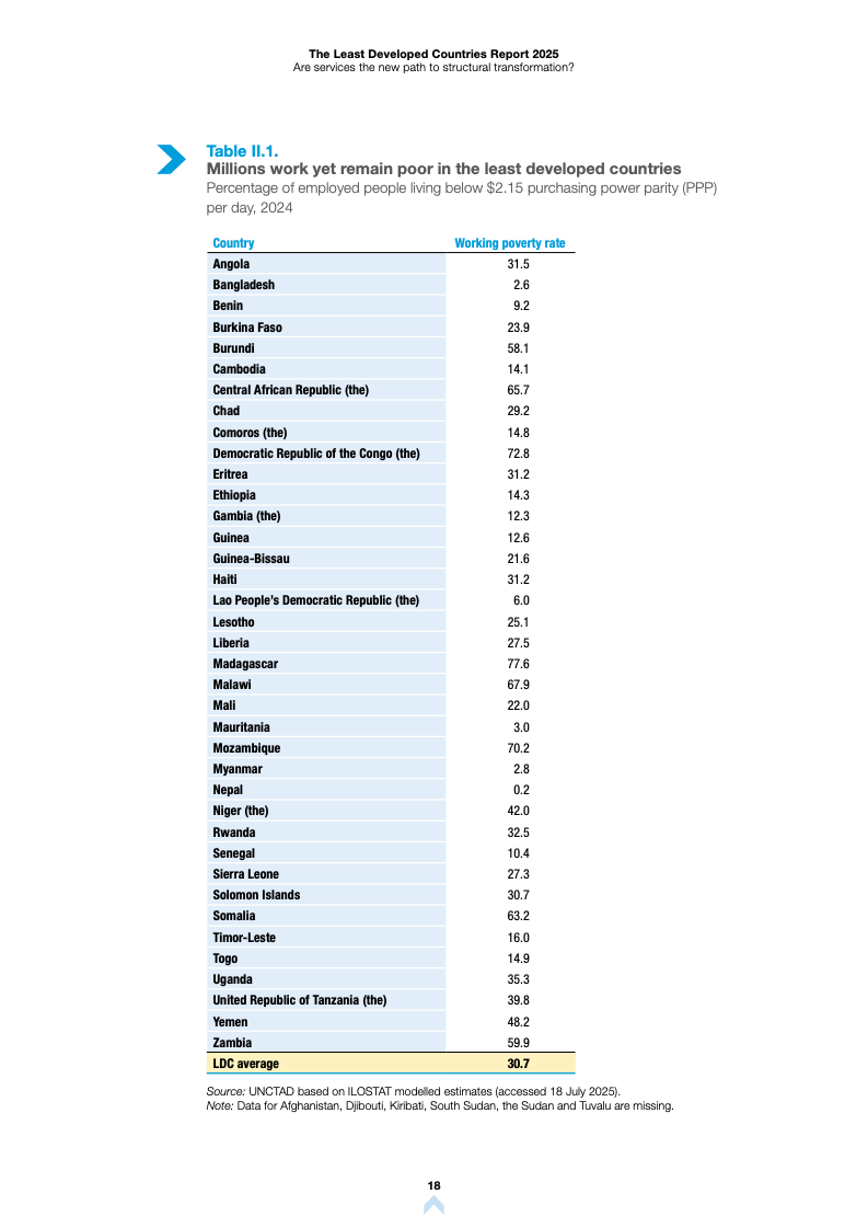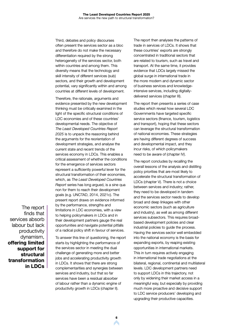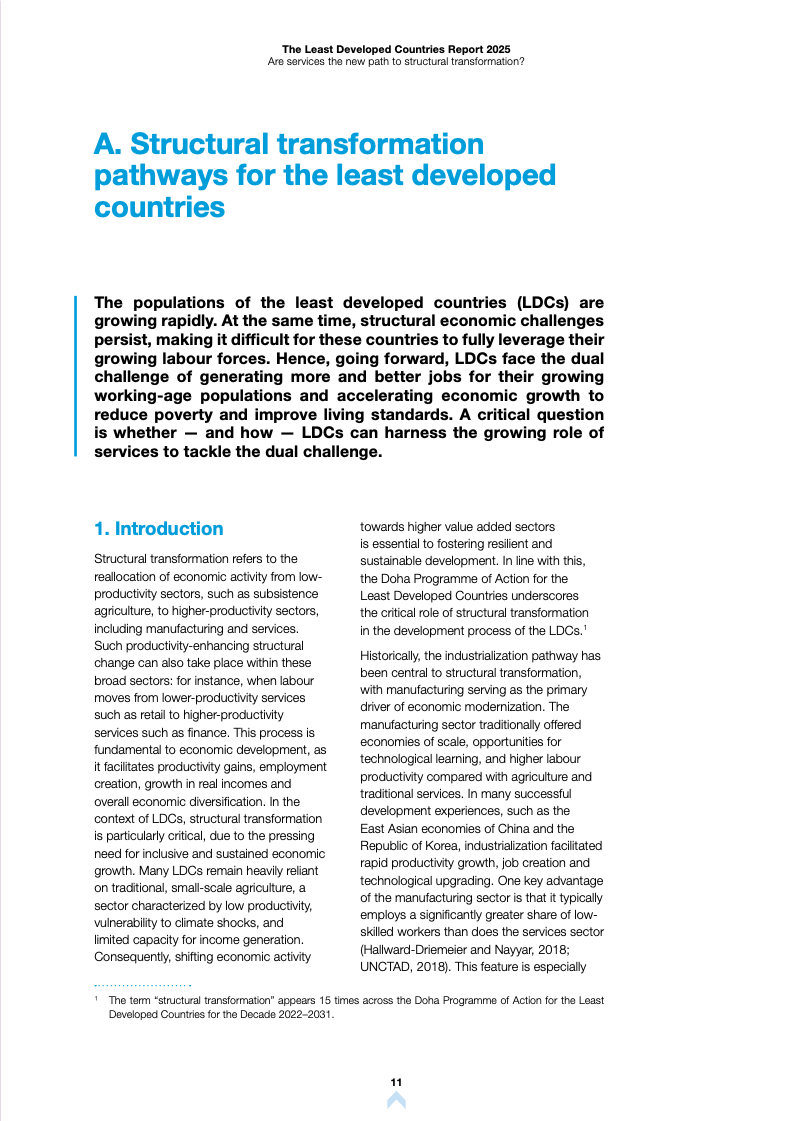 根据《2025年最不发达国家报告》,全球最不发达国家(LDCs)正经历显著的经济结构变迁。服务业已成为这些经济体增长与就业的核心支柱,但在生产率转化方面仍面临严峻挑战。